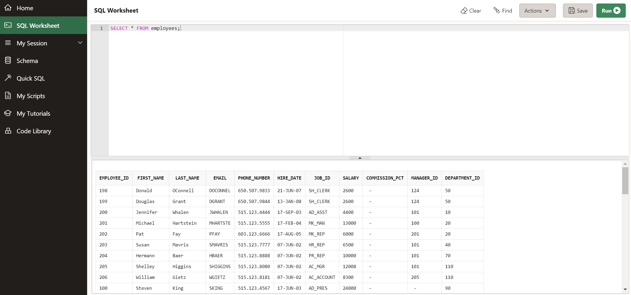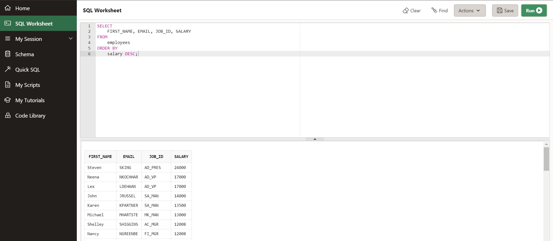 앞 포스팅에서 설명했던 무료 SQL 테스트 사이트에서 실행하면서 테스트해보자