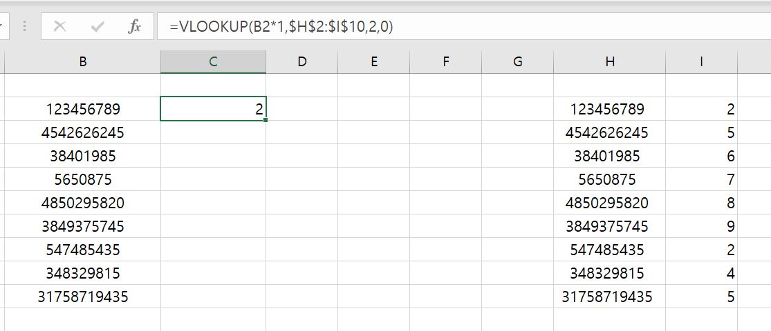 =VLOOKUP(B2,$H$2:$I$10,2,0)