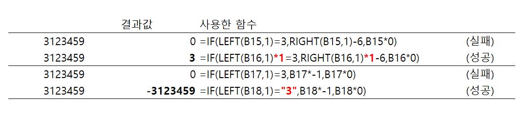 이 때 기존 함수가 숫자로 인식되지 않는 경우라면 똑같이 조건절도 3 (숫자)로 기입하는 것이아니라